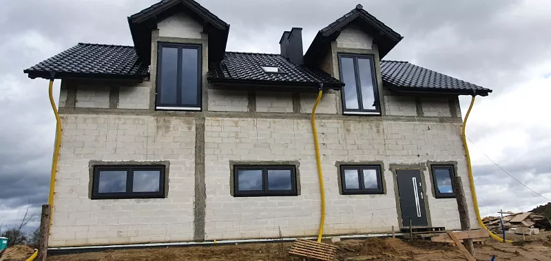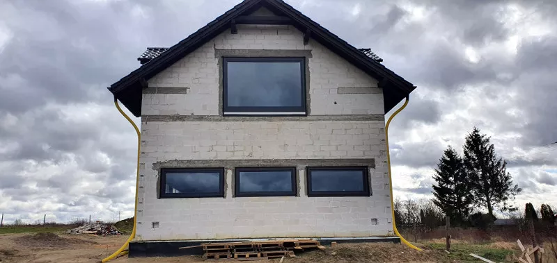 Nasza firma dokonała kompleksowej usługi montażu okien w modnym kolorze antracyt, drzwi wejściowych w eleganckim wzornictwie i bram garażowych również w jednakowym kolorze jak cała stolarka otworowa.